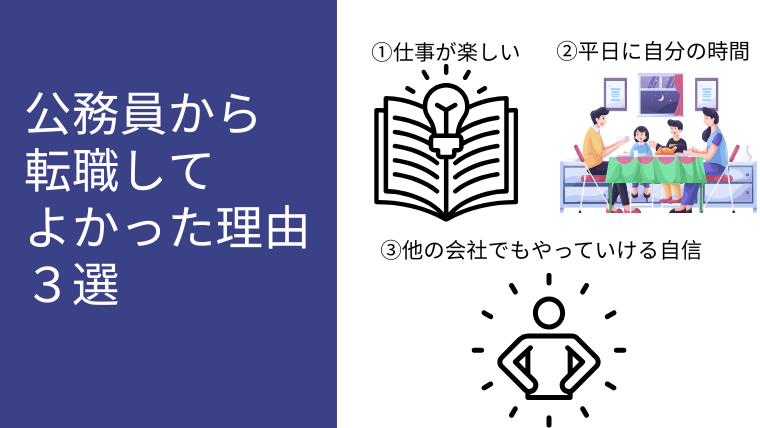 なかでも「公務員から転職して良かった」と強く感じる点は以下の3つです。